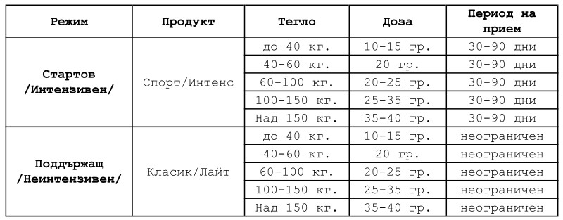 През първите 10 дни на приема е препоръчително дозата да се удвои. Този период е основополагащ за първоначалното натрупване в организма и стимулирането на регенеративните процеси в него.